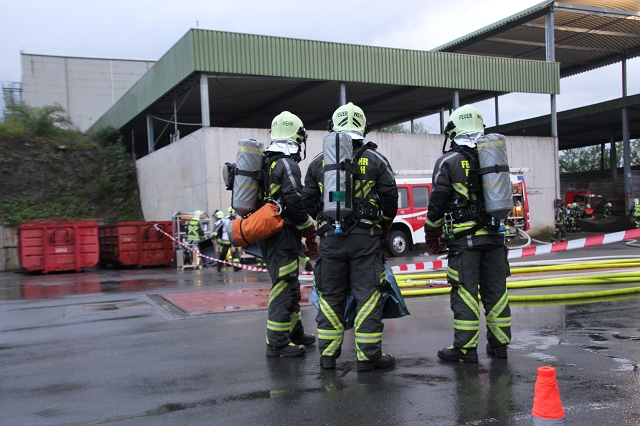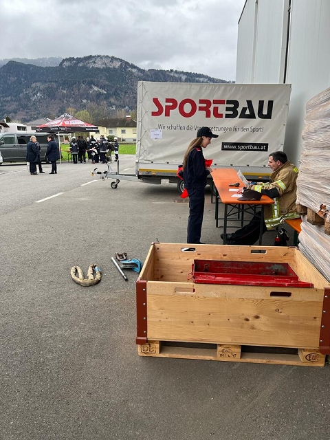 Nur dank dem Einsatz und der Unterstützung der Firma 'böhler Abfall GmbH', Wässerfeld 5, 6800 Feldkirch, https://www.boehler.org/, war es uns möglich, diese Übung durchzuführen. Die Firmengruppe Böhler, vertreten durch Christian und Larissa Böhler, stellten neben dem Firmengelände auch Fahrzeuge, Equipment und Fachwissen bereit und unterstützten uns, wo es nur möglich war. Ebenso übernahmen Christian und Larissa Böhler dankenswerterweise die Kosten für die anschließende Verpflegung der rund 90 Einsatzkräfte sowie Übungsdarsteller im Gerätehaus Gisingen. Sie nutzen auch die Gelegenheit für einen Besuch im Feuerwehrhaus Gisingen, wo gemeinsam Bilanz über die erfolgreiche Übung gezogen wurde.