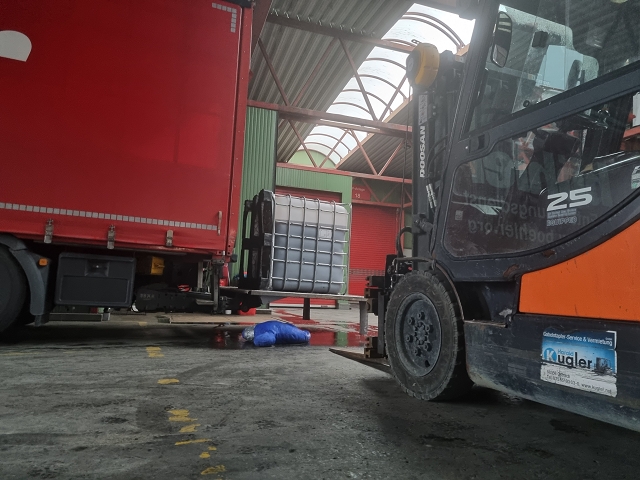 Die ersteinschreitenden Atemschutztrupps mussten Crashrettungen durchführen, um die Verunfallten aus der sogenannten "heißen Zone" (direkter Schadensraum mit maximaler Kontamination und Gefährdung) zu retten und an weitere Kräfte zu übergeben. Um die weitere gefahrlose Behandlung durch den Rettungsdienst zu ermöglichen, mussten die Verunfallten und eingesetzten Ersthelfer dekontaminiert werden. Parallel dazu rückten die Spezialkräfte in speziellen Chemieschutzanzügen vor. Es gelang diesen die austretende Flüssigkeit aufzuangen und die Leckage provisorisch abzudichten, um eine weitere Ausbreitung zu verhindern. Vorallem durch den nur begrenzt möglichen Einsatz von entsprechend geschützten Kräften in der direkten Gefahrenzone waren im Speziellen unsere Atemschutztrupps gefordert.