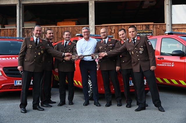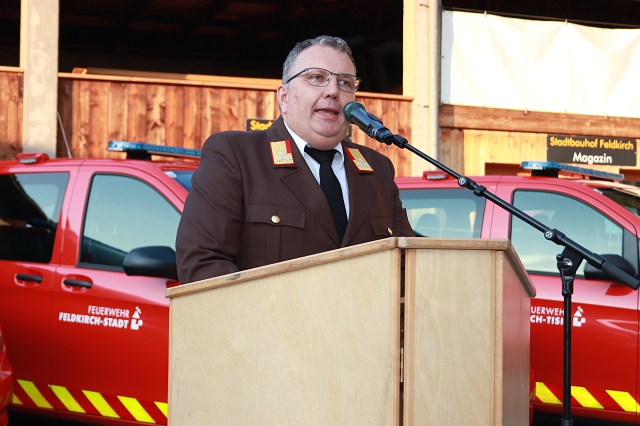 Abschnittsfeuerwehrkommandant Josef Fröhlich beschrieb in seiner Eröffnungsrede die Neuanschaffung eines Dienstfahrzeugs als besonderes Ereignis für eine Feuerwehr. Noch besonderer sei es allerdings, wenn es sich nicht nur um eine Ersatz-, sondern sogar um eine zusätzliche Neuanschaffung handle. Bezirksfeuerwehrinspektor Huber Wolfgang bezeichnete die gleichzeitige Neuanschaffung von 6 baugleichen Feuerwehrfahrzeugen innerhalb einer Gemeinde, die nötigen Absprachen sowie den gemeinsamen Entschluss aller 6 Kommandanten sogar als vermutlich einzigartig im Land Vorarlberg.