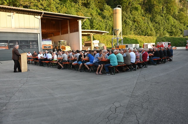 Nach dem offiziellen Festakt sorgte das Team des städtischen Bauhofs für die Verpflegung der geladenen Feuerwehrmitglieder aller Ortsfeuerwehren und der Ehrengäste. Im Innenhof des Bauhofs der Stadt Feldkirch ließ man den Abend dann noch gemütlich ausklingen und feierte gemeinsam die neuen Einsatzmittel.