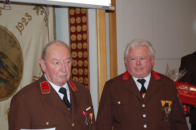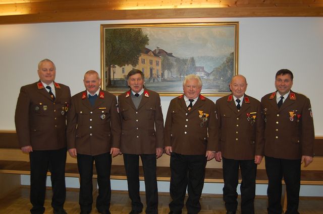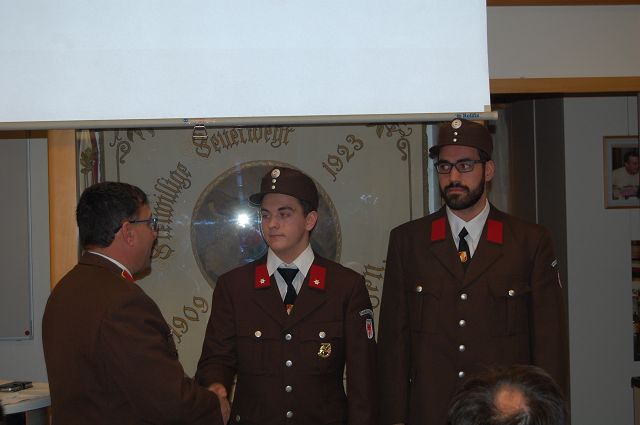 Die Jahreshauptversammlung stellt auch jedes Jahr den würdigen Rahmen dar, um langjährige Mitglieder zu ehren. So konnten in diesem Jahr Walter Gau für 60 Jahre ein Ehrengeschenk und Josef Hartmann für 50 Jahre Mitgliedschaft in unserer Wehr die Feuerwehrmedaille in Gold entgegennehmen. Auch seitens der Stadt Feldkirch ehrte Bgm. Berchtold die beiden Jubilare. Weiters wurde an Sonderegger Eduard und Werner Biedermann, zwei verdiente Wehrmännern, die Ehrenmitgliedschaft verliehen.