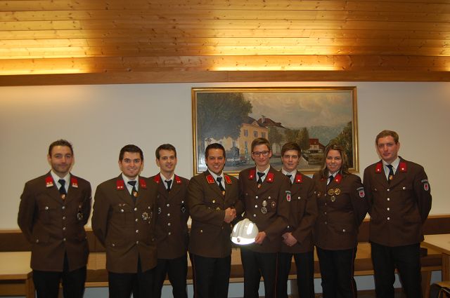 Neben den Ehrungen stand auch noch ein weiterer besonderer Programmpunkt auf der Tagesordnung der 100. Jahreshauptversammlung. Nach über 10jähriger Tätigkeit im Dienste der Feuerwehrjugend übergab Dominik Leimegger die Aufgabe des Jugendleiters in jüngere Hände. Kdt. Tschann bedankte sich bei ihm und seinem Team für die geleistete Arbeit und wünschte dem neuen Jugendbetreuerteam unter der Leitung von Thomas Lampert viel Erfolg bei dieser sehr bedeutenden und zeitaufwendigen Tätigkeit zur Sicherung des Nachwuchses der Feuerwehr Gisingen.